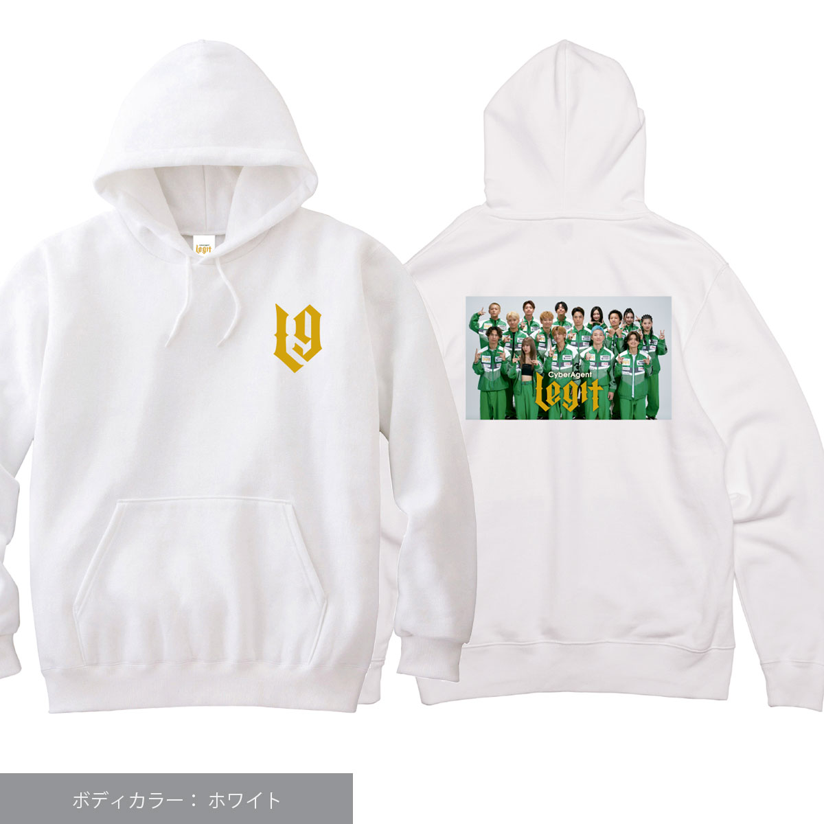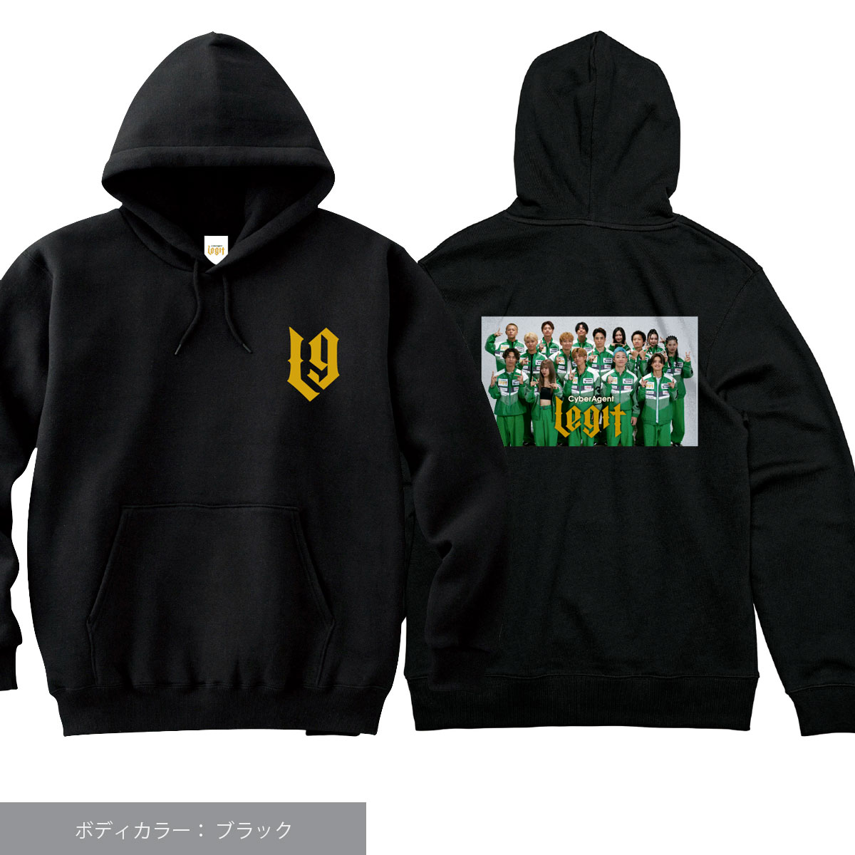 CyberAgent Legit 全員集合のチームフォトがプリントされた公式フーディーと