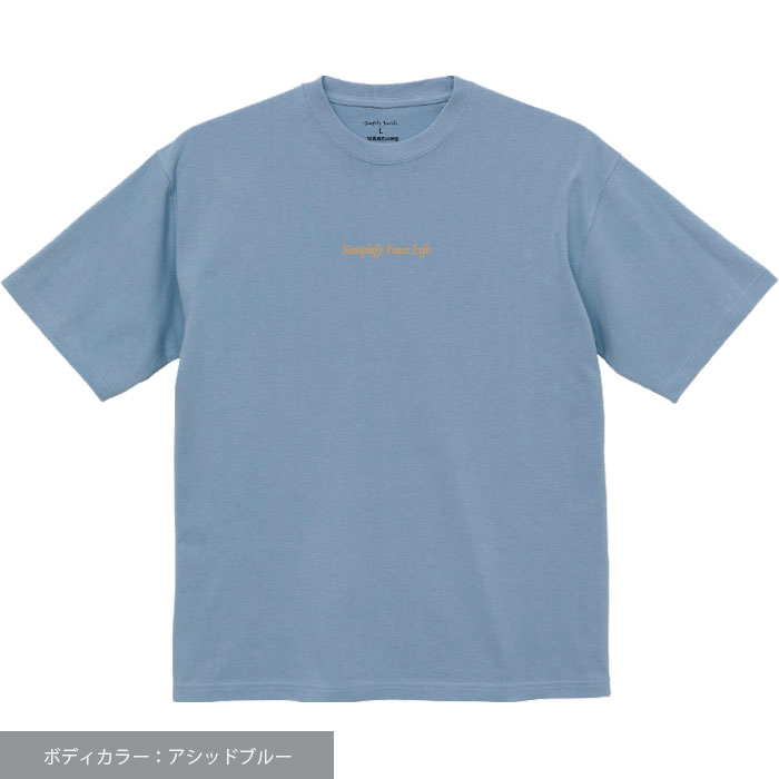 前面胸真ん中にはSimplify Yourlifeの刺繍ロゴ。 背面端部分には今回から新たにデザインしたロゴを刺繍。 ボディは通常のサイズ感より大きいシルエットを採用。 どの場面、服装にもシンプルに合わせやすいデザインとしました。 カラー展開 アシッドブルー Size : M,L